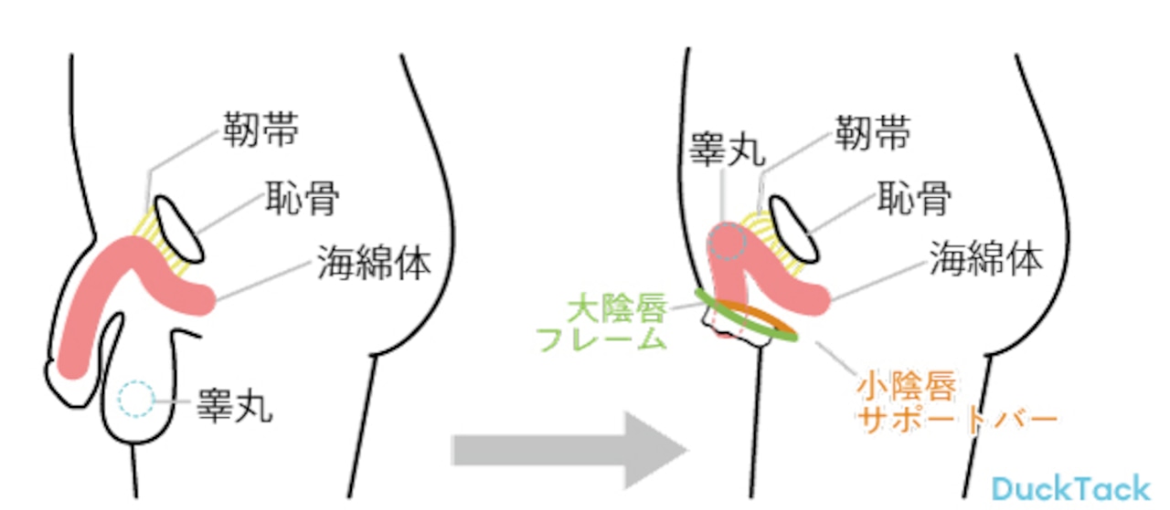 DackTackは性転換手術をすることなく女性器のようなリアルな外観に簡単補正可能です♡